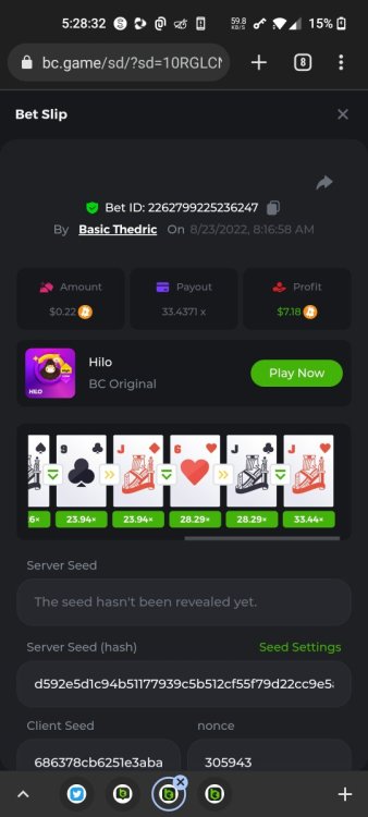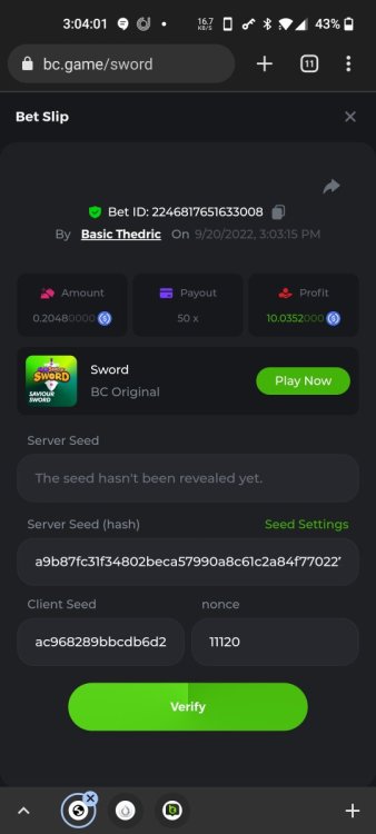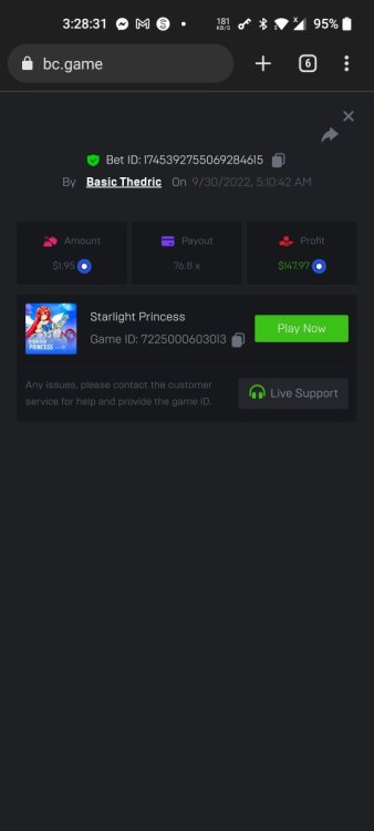 Multiplier: 100X Bet: $0.4096 Bounty: Yes Glad this didn't take too long. I'm not a fan of this game. IMO the bounty is silly for this one. Too easy. As can be seen by how many ppl on page 1 alone got it. Just my $.02 https://bc.game/sd/?sd=10TEPGQMJ45HCJ And the bounty https://bc.game/sd/?sd=10TEOAK0JLFOCZ -