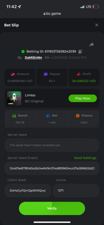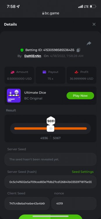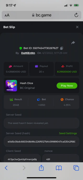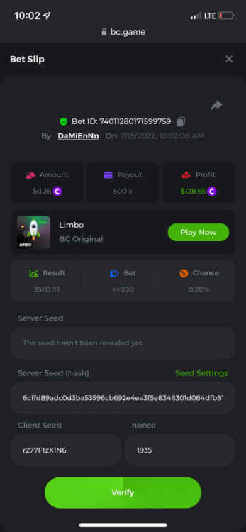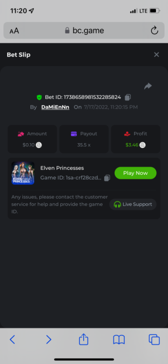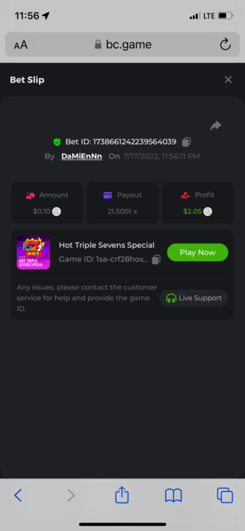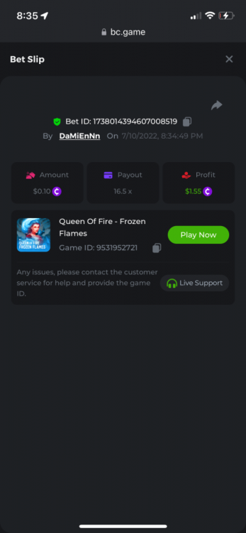 2. Limbo $2.00 bet 100x Limbo-Win 74011280171599051 7/15/2022, 9:47:30 AM $200.00 ☝lost bet ID link. So copied and pasted from my wallet transactions. https://bc.game/sd/?sd=10ORWSSCI1A58Z $4.00 bet 20x https://bc.game/sd/?sd=10ORXEQA92L4B7 $0.25 bet 500x Bounty.